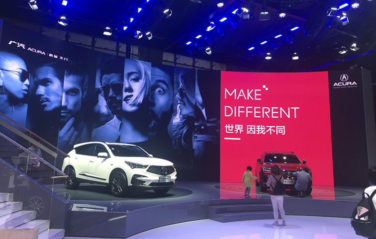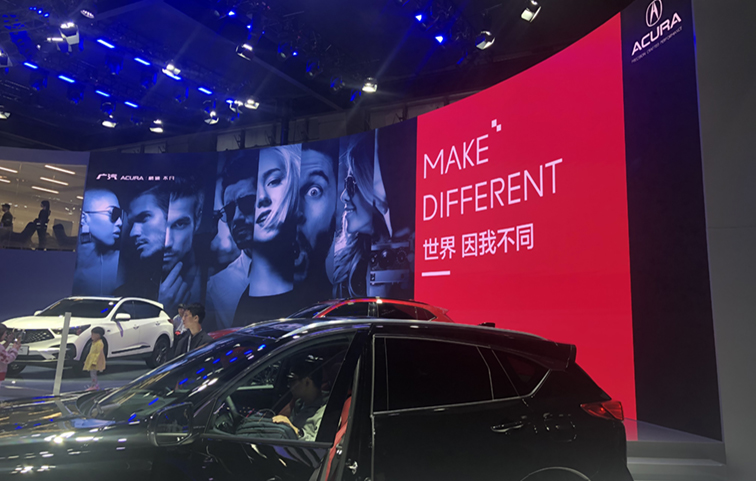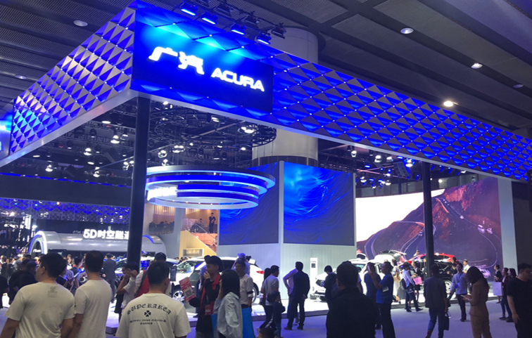 2019廣州國際車展廣汽謳歌展臺,RD2.8租賃屏,200平方米。